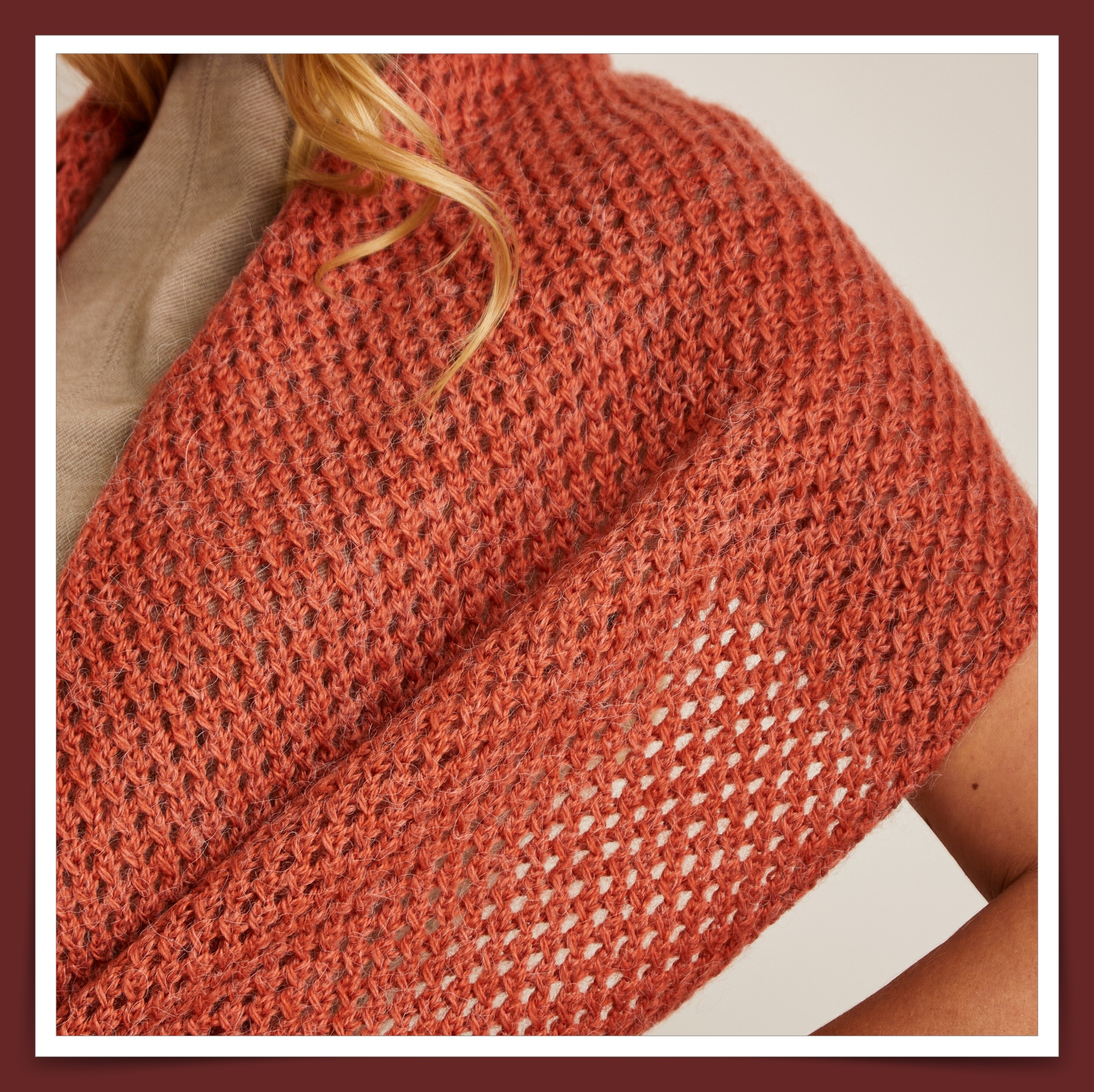 Les dimensions de l'étole et les 56% de laine de ce fil, sont parfaits pour apporter un maximum de chaleur.
