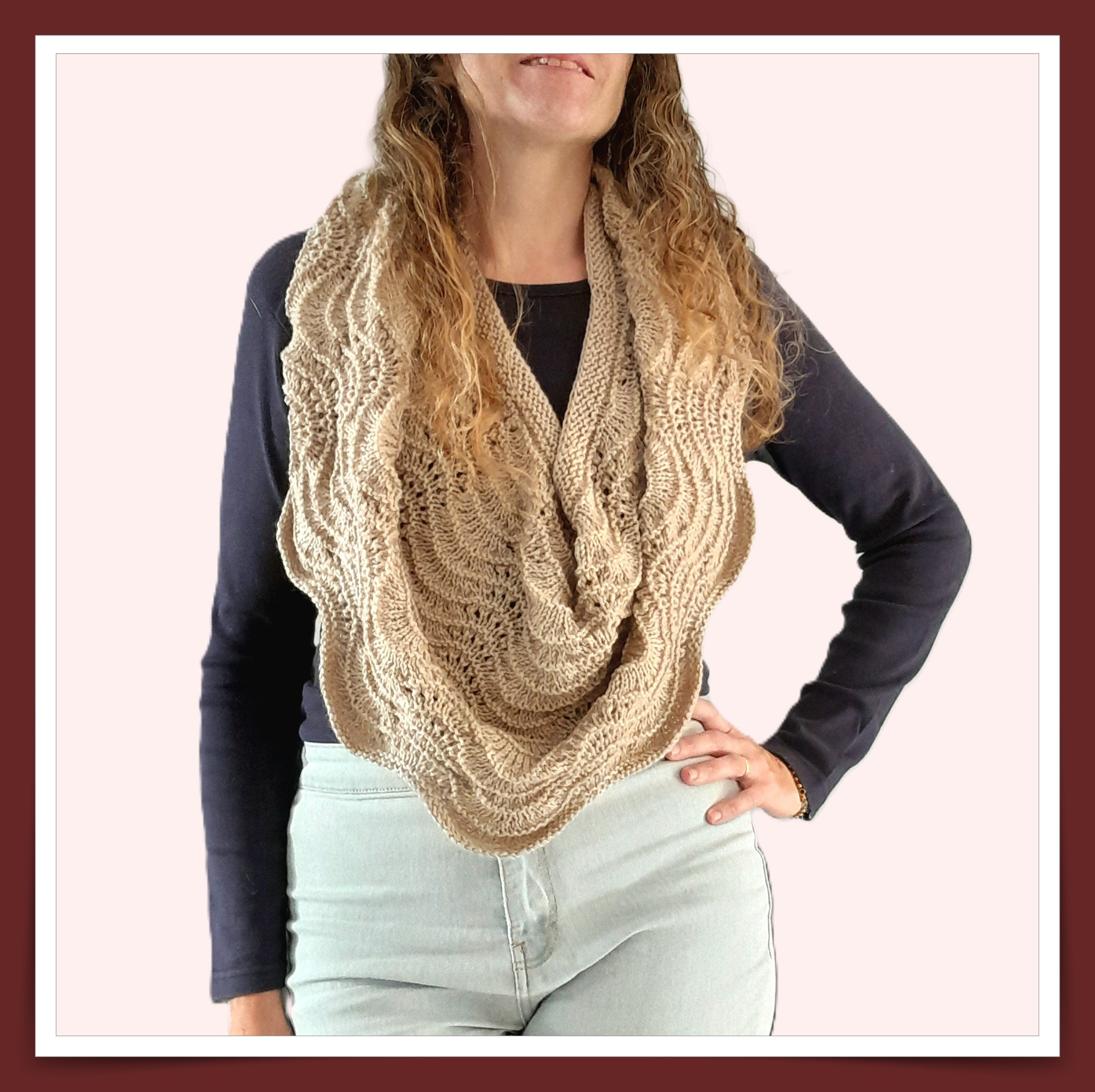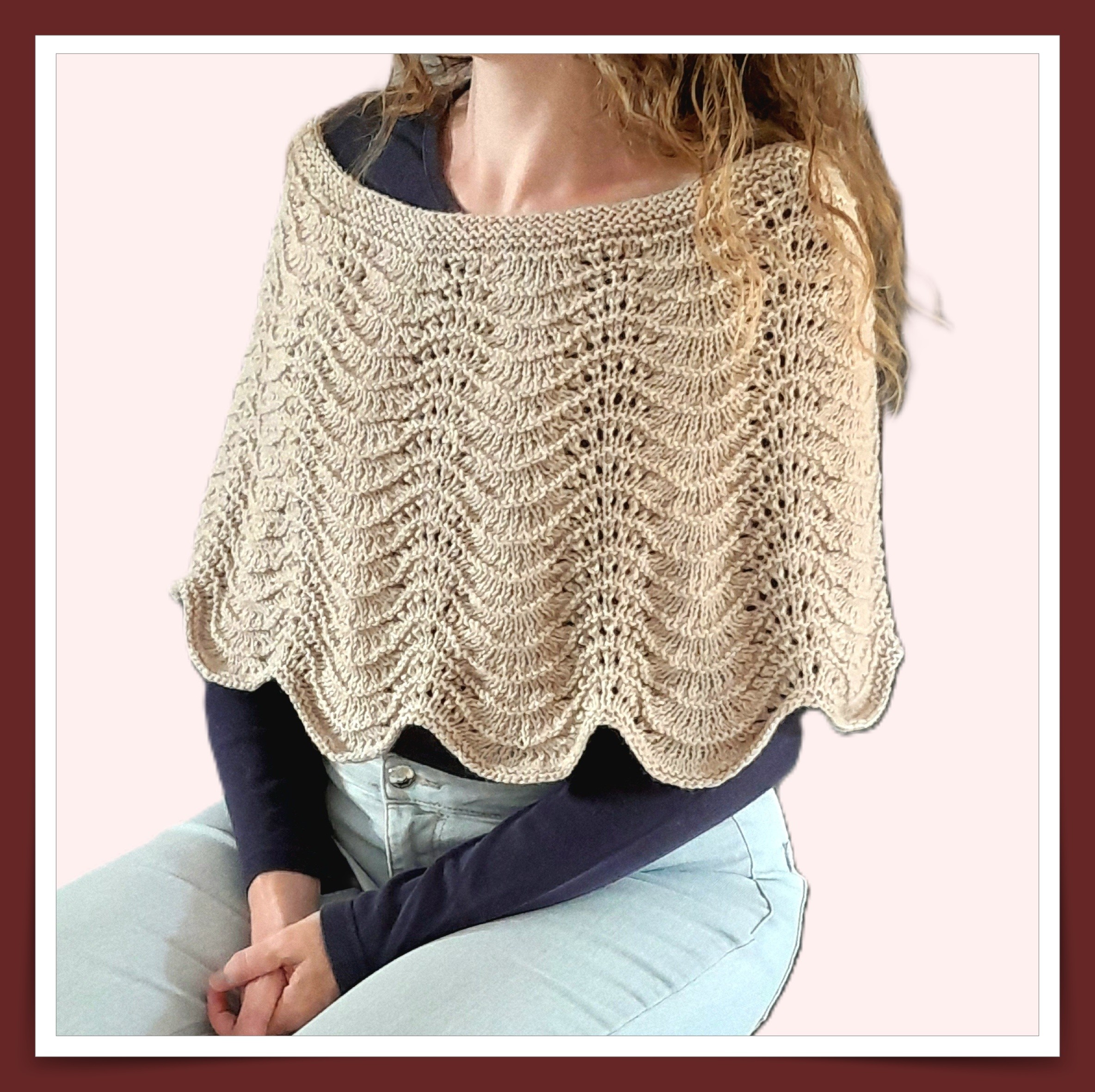 Le Poncho est réalisé avec un joli motif au point de vagues. Alternance de jours et de point mousse, cette fantaisie apporte un côté très romantique à l'ouvrage.