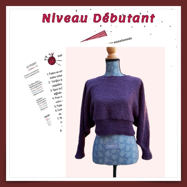 TUTO DEBUTANT - Collection ESTELLE - Le Pull Chauve-Souris - Explication tricot - Fiche PDF - Tuto en français - Cape - Point de Jersey et point de côtes