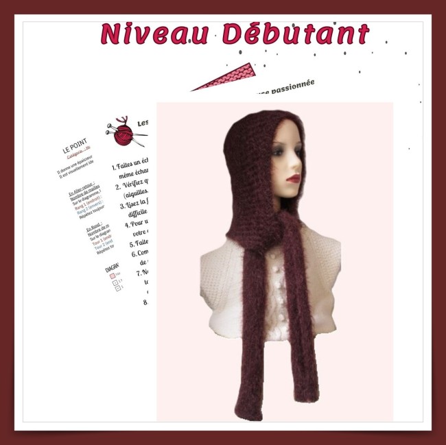 TUTO DEBUTANT - Collection PLUME - L'Echarpe Capuche - Explication tricot - Fiche PDF - Tuto en français